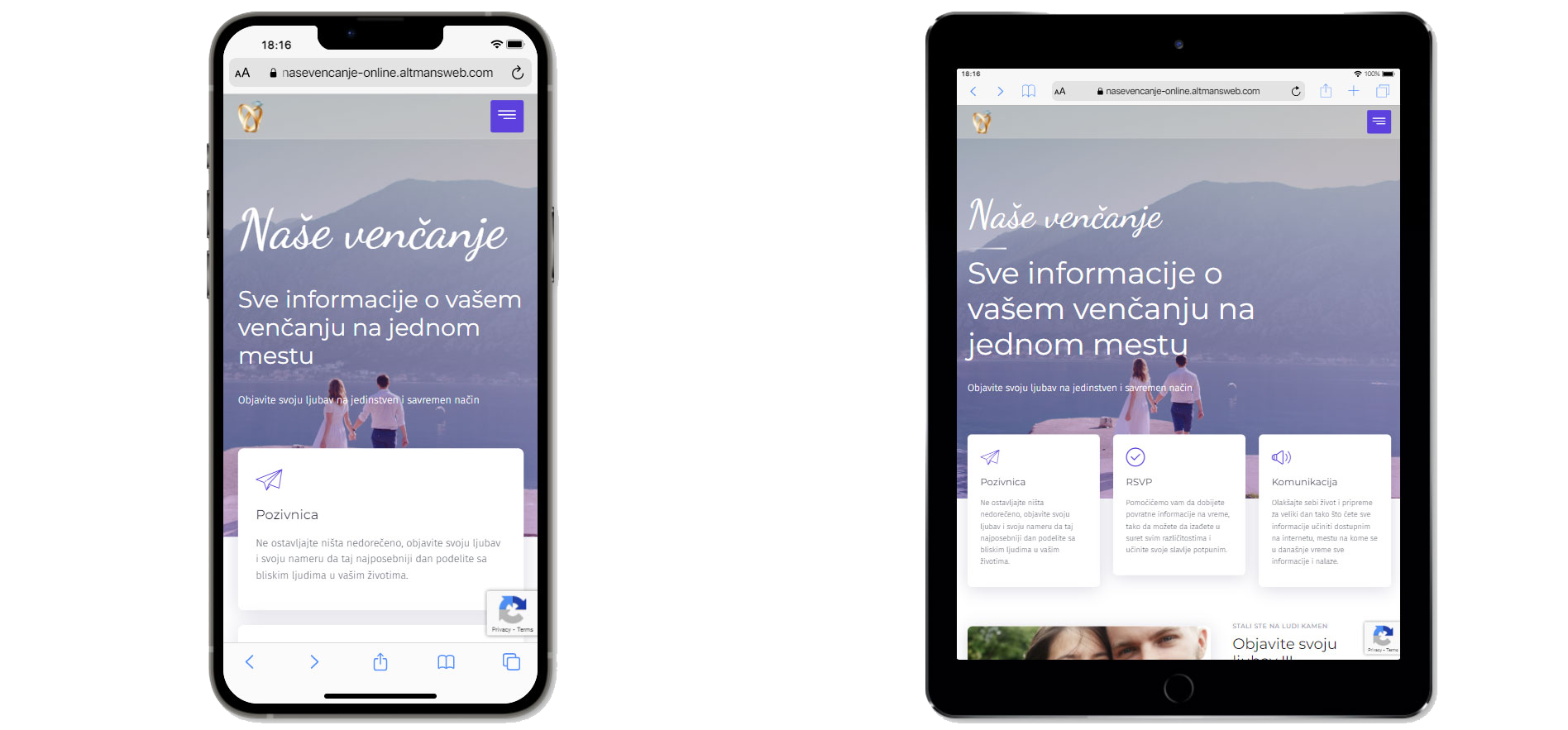 Project “Naše venčanje ONLINE” (Our Wedding ONLINE) is our project, developed with the idea to help newlyweds that organize their wedding, to share all relevant information with invited people.